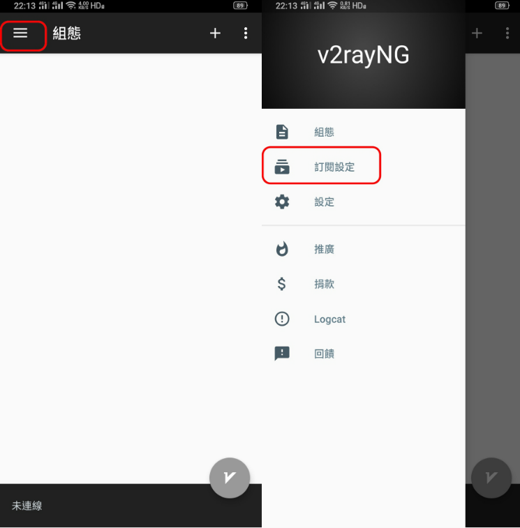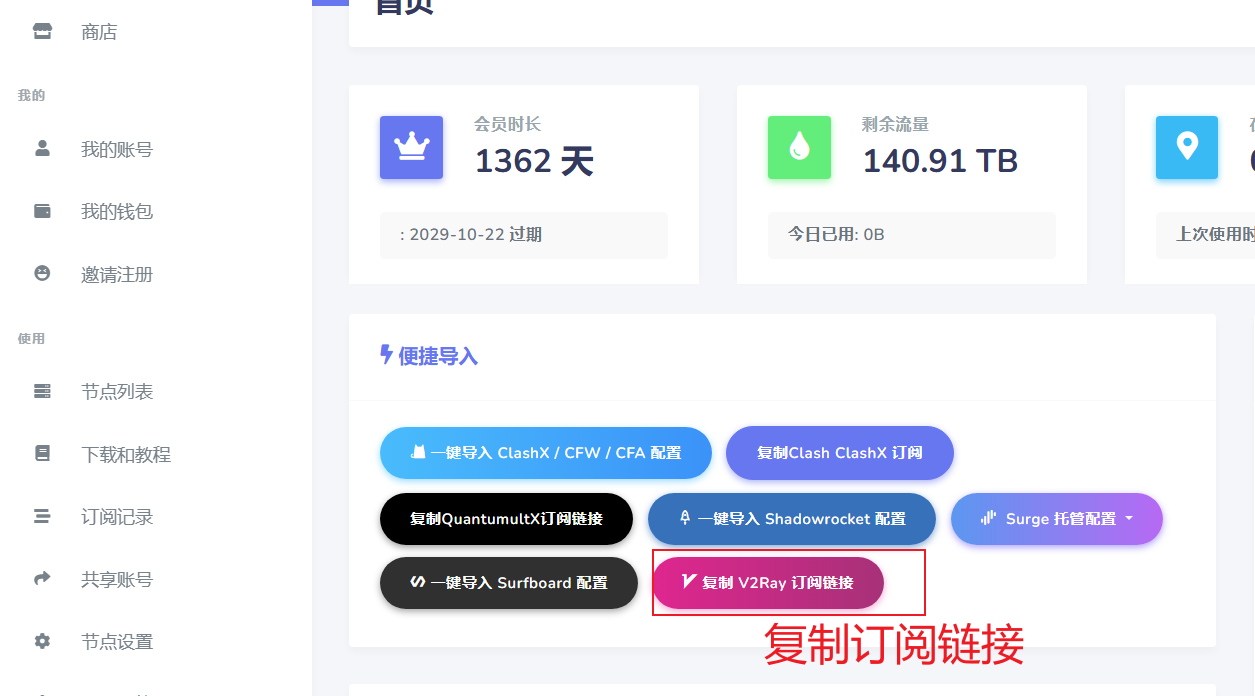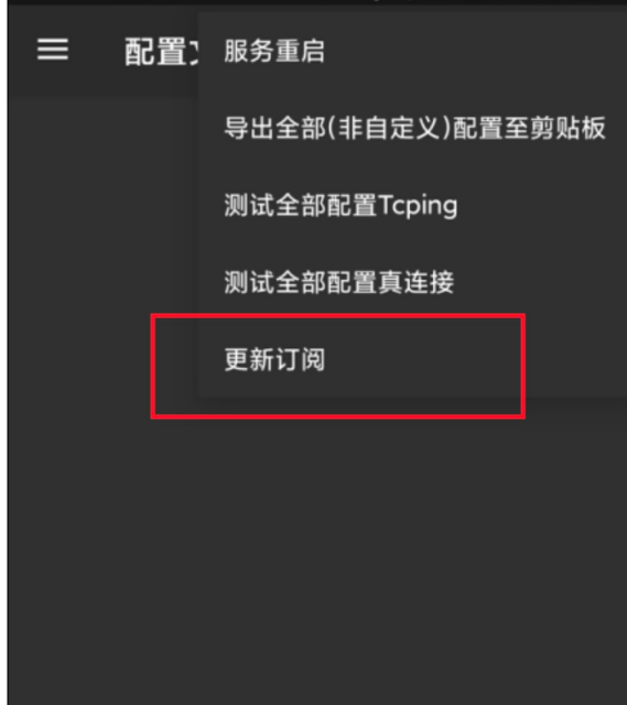 ### 1. 下载软件 ### 2. 导入节点 使用手机打开网站,在用户中心页面下方的节点导入区域找到“点击复制 V2ray 通用订阅链接”按钮,并在稍后填入到 v2rayNG for Android 客户端中进行手动下载。  #### 打开 V2RayNG 客户端,点击左上角三道杠标志,进入订阅设置。  #### 点击 + 以添加新的订阅,并粘贴自己的订阅地址。  #### 返回软件首页,点击右上角三个点的选项。选择更新订阅后等待若干秒,软件会从服务器下载配置。   #### 选择你需要的节点,点击右下角 V 字图标启动代理,首次配置会提示是否创建VPN代理,请允许。
